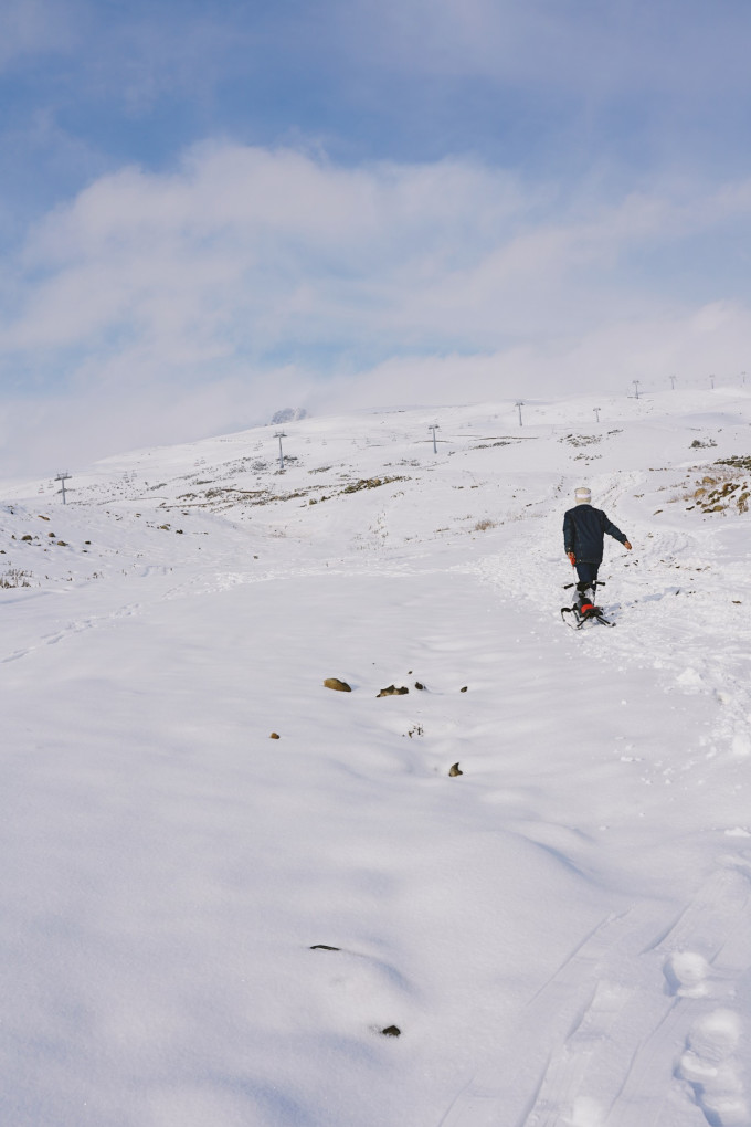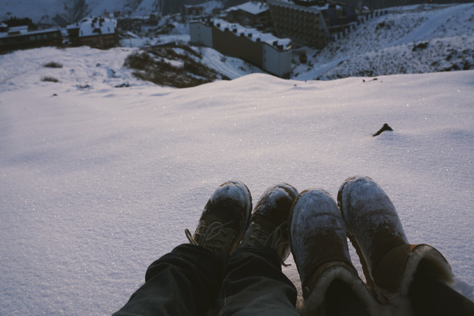 这意味着,我们要徒步在厚厚的雪地上缓缓地下山去,看着有雪具的人都是滑下去的,我们却只好深一脚浅一脚地在雪地里坚强地走着。
