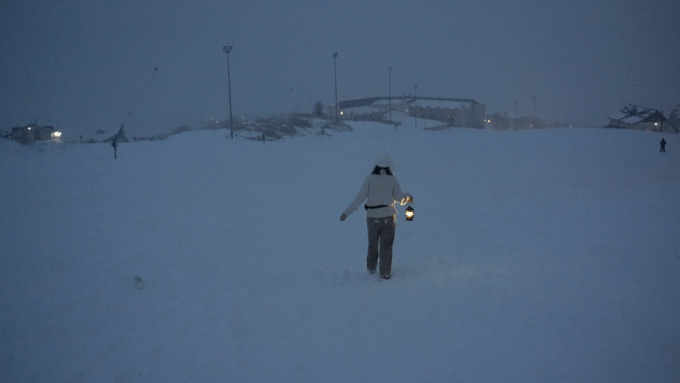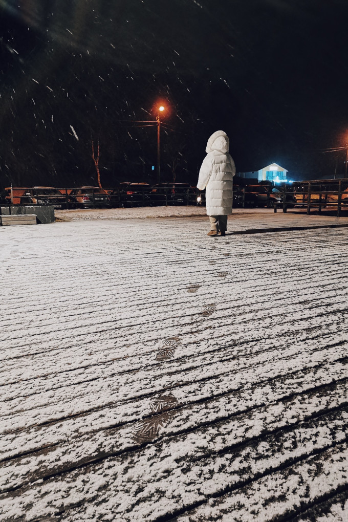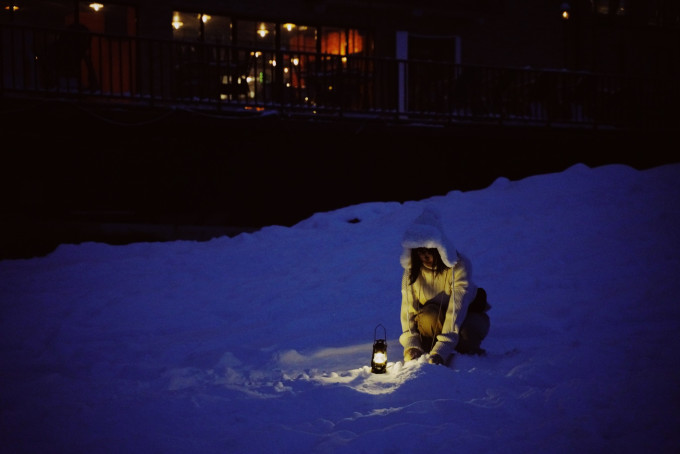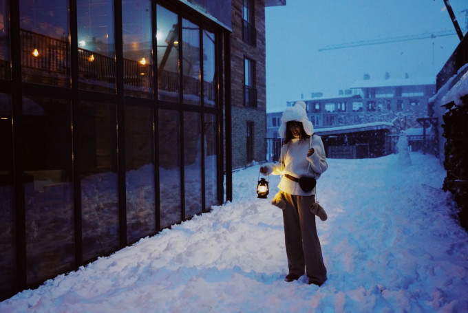 这真的是一个粉雪的世界,粉末状的白雪质感让人超级兴奋,踩在雪地上有着沙沙的声音,是我以前从来未感受过的质感。所以一整天里我比较多的时间是在雪地里的,即使是晚上,我还是忍不住出来走走,争分夺秒地记录着这份喜悦。