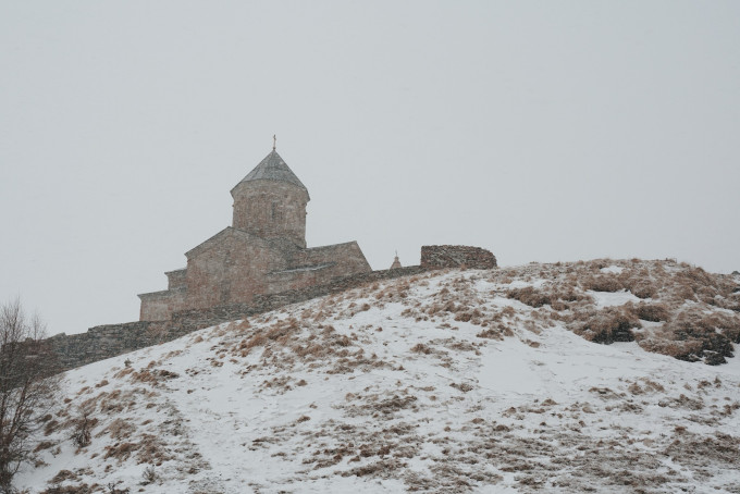 卡兹别克 (Kazbek),这里有奶油般的雪山,有世界上最孤独的山顶教堂,路上都是高大友善又粘人的 高加索 大狗……