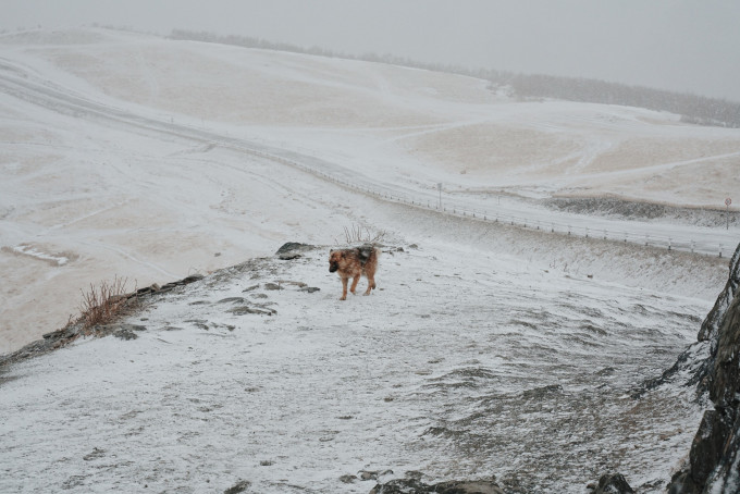 今天跟狗狗们道别后便要从这个粉雪的世界出发西格纳吉了。这些狗狗都是总徘徊在这家酒店附近的,出入都能与它们遇见,于是它们便会跟着你陪着你走一段,对于我这种爱狗人士来说,这里简直是天堂。