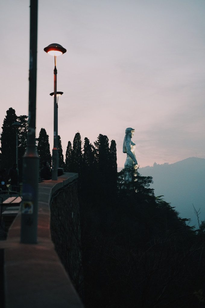 前面说过了,我们俩在 第比利斯 落脚的“家”就在母亲堡垒的边上,详细点来说,是步行上母亲堡垒的坡的边上,所以细逛了一天 第比利斯 后,咱们回到民宿休整了一番,看着太阳缓缓西斜,正是时候了,我们可以出发上去看日落与夜景了。