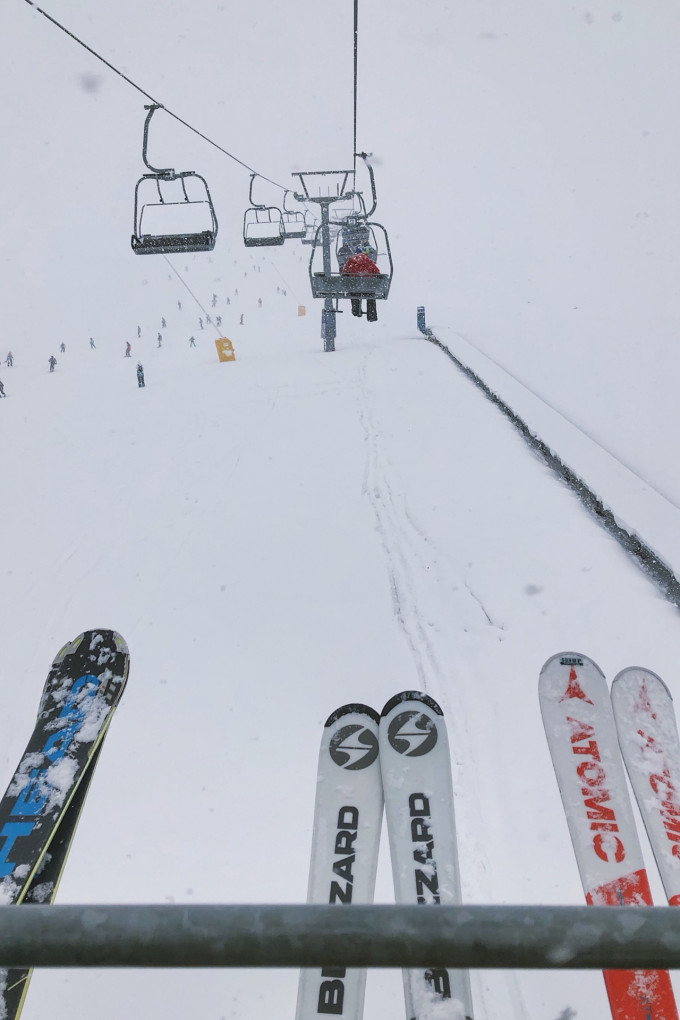 约到了滑雪教练的这一天,古多里下着大雪,咱们租了雪具和教练一起到缆车点,再乘坐缆车上山。