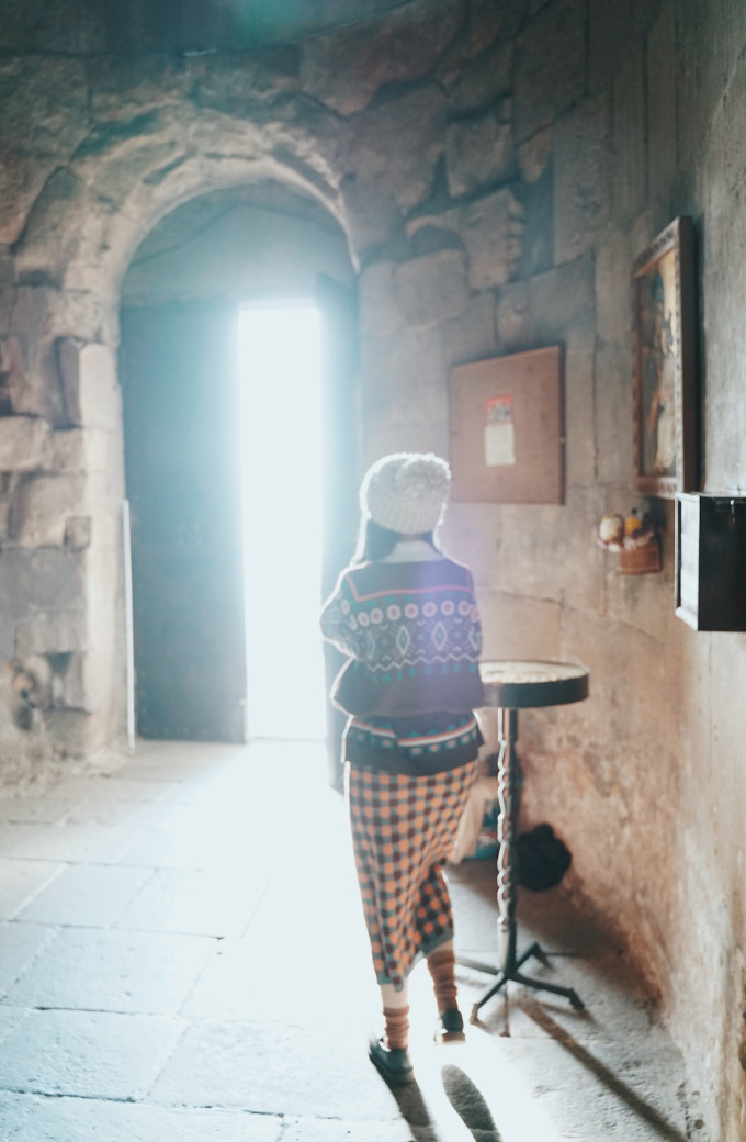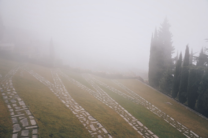 而且当我们用了大概1个多小时步行到了圣妮诺女修道院时,它几乎完全隐在浓雾里,真的让人感到很丧气。遇见的格国人解析说,冬季的天气确实不太好,你们要是夏季来,这里到处都种满了鲜花,望出去就是天边的雪山……