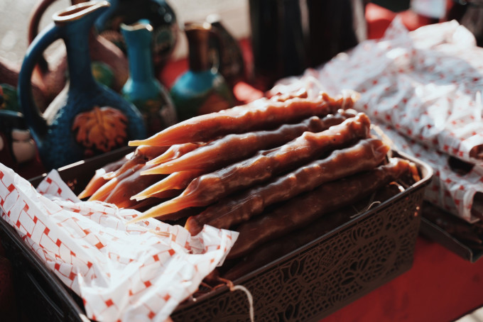 这其实是格国的传统国民零食churchkhela,但在旅程的这时我们对它的认知还是以为它是一根根的蜡烛,哈哈哈哈哈,直到后面到达 姆茨赫塔 时看到它的试吃,吃了还买了才发现一直到处看到的它居然是食物!不是蜡烛!