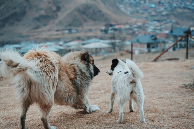 如我所愿地与遍地的 高加索 大狗子们做朋友,跟它们处成自家狗狗的模样;