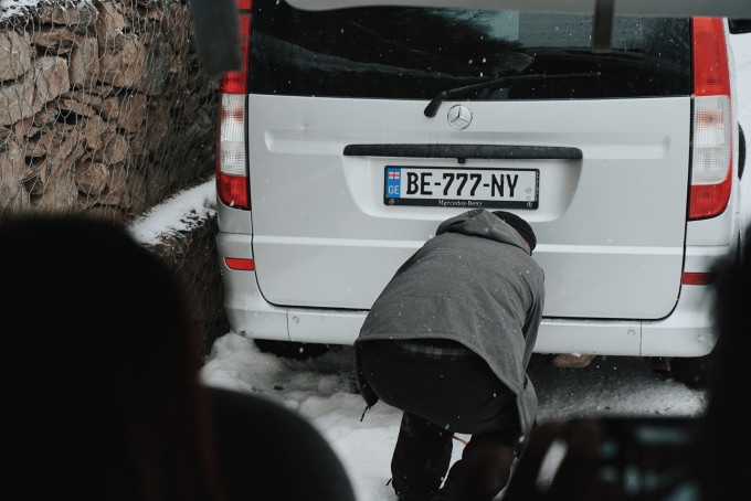 不算特别困难,就找到了前往西格纳吉的小巴了,不过小巴的地名牌子用的都是格国文字,要不是那么多热心群众指引,可能就不是特别好找了。我记录了一个很重要的信息,其实这个小巴站就在一个加油站的正对面,当你从地铁站出来后可以先确认一下加油站在哪,就肯定能找到这个小巴站了啊。