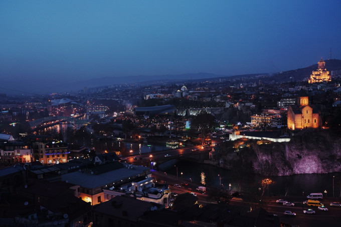 到达格国的第一站 第比利斯 后,经过了计算上时差起码20个小时的旅途路程后,我跟老赵找到了民宿便倒头大睡了一番。不过早早地便自然醒了,多少点了?怎么还没有天亮?一看手机上显示的时间,早上7点多了呀,怎么外面还是黑乎乎的一片呀?只有远处的圣三一大教堂照亮了夜空。