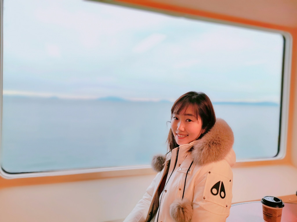 一个成人目前单程船票是17.20加币,详细的船票信息可于BC Ferries官网查询。将车开上船停好后,就可以上楼开始一个半小时的航海旅程了。