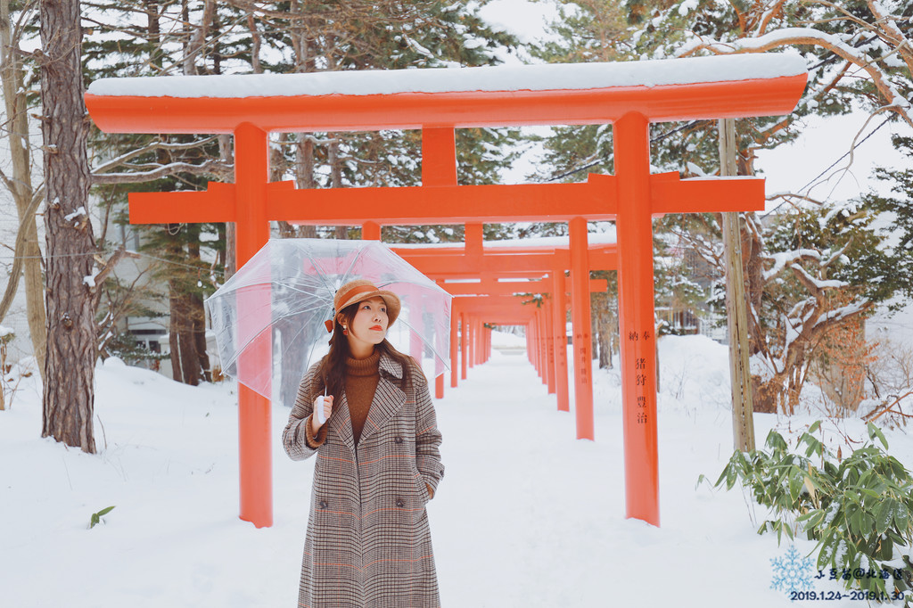 相比更为游客熟知的北海道神宫,我选择了超小众的伏见稻荷神社,雪地里的红色千鸟居美得令人发指。相比关西的稻荷神社,这个规模是非常小了,但胜在人少安静。