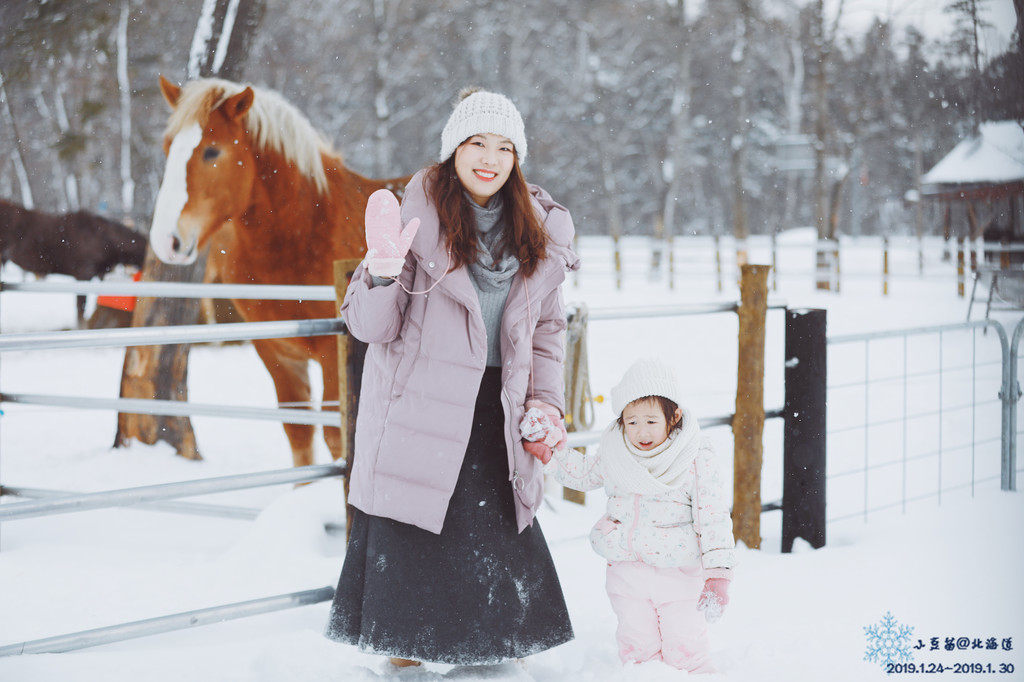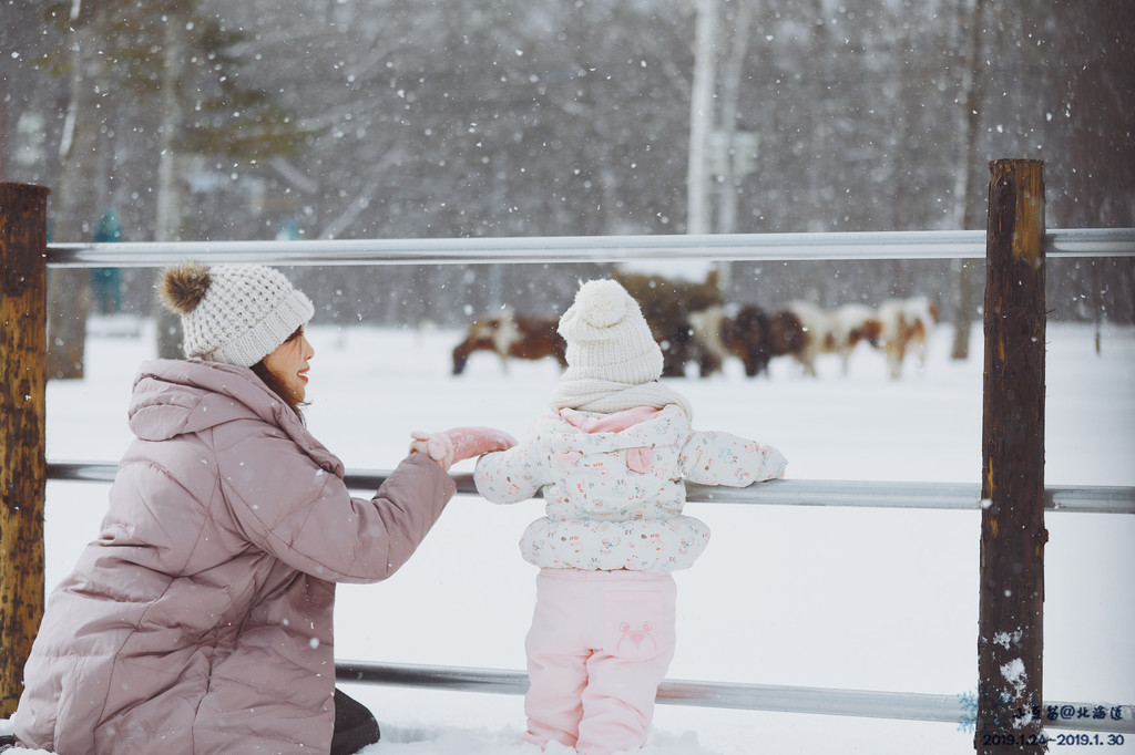 小苗苗在这小矮马面前,仍然非常的小只,看起来萌萌哒~而且她一点也不害怕,还捧着雪要给小马喂食。珍惜这一瞬间,无论刮风下雪,阳光雨水,都是大自然的恩赐。每次旅行都很纠结天气的我,在 北海道居然不畏惧任何天气,因为它都可以用最美的样子呈现出来。