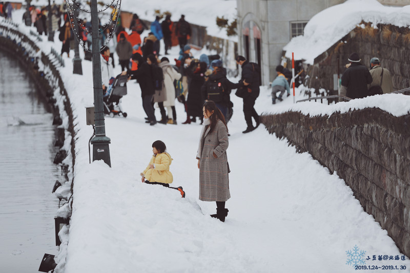 意外发现,这里更符合我的审美,都是让旅行团给闹的,以为桥头是最佳取景地,惹得人们趋之若鹜。平静的河流两边是积雪的岸堤,周边矗立的是石砌的仓库,盖着白雪,挂着冰凌,这才是小樽独有的浪漫气息嘛!
