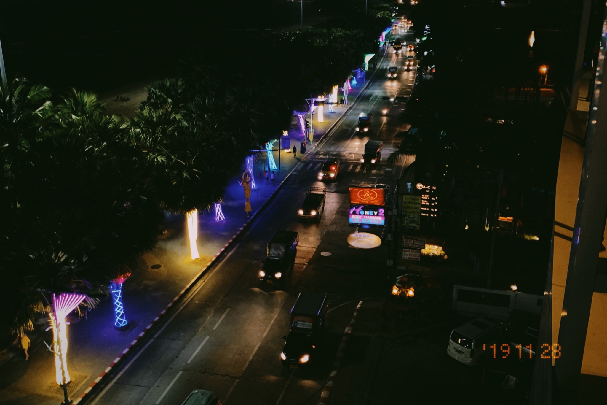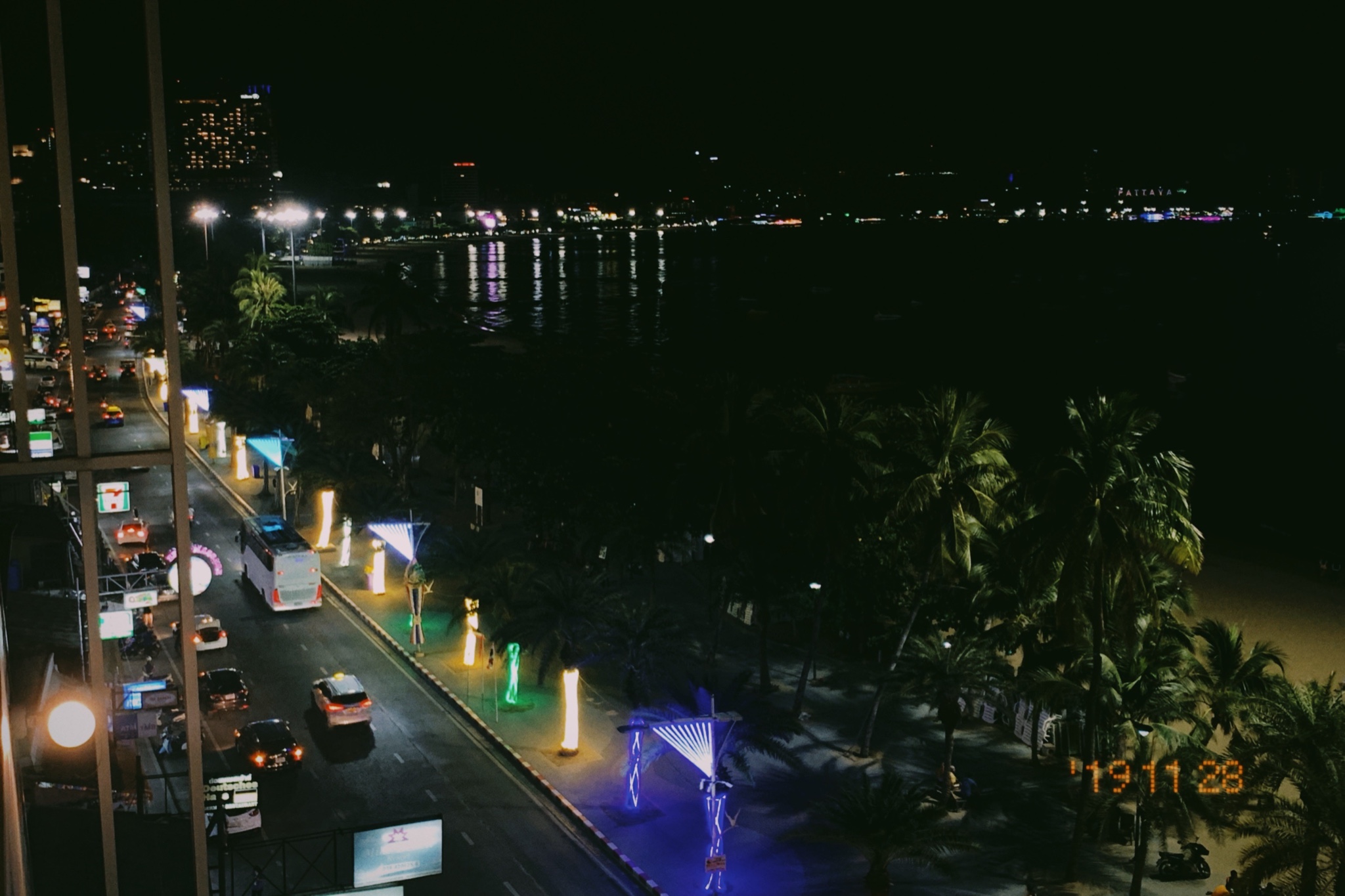 从我们房间看楼下的马路、看对面的大海, 芭提雅 的夜生活开始了,可我们的却结束了😭