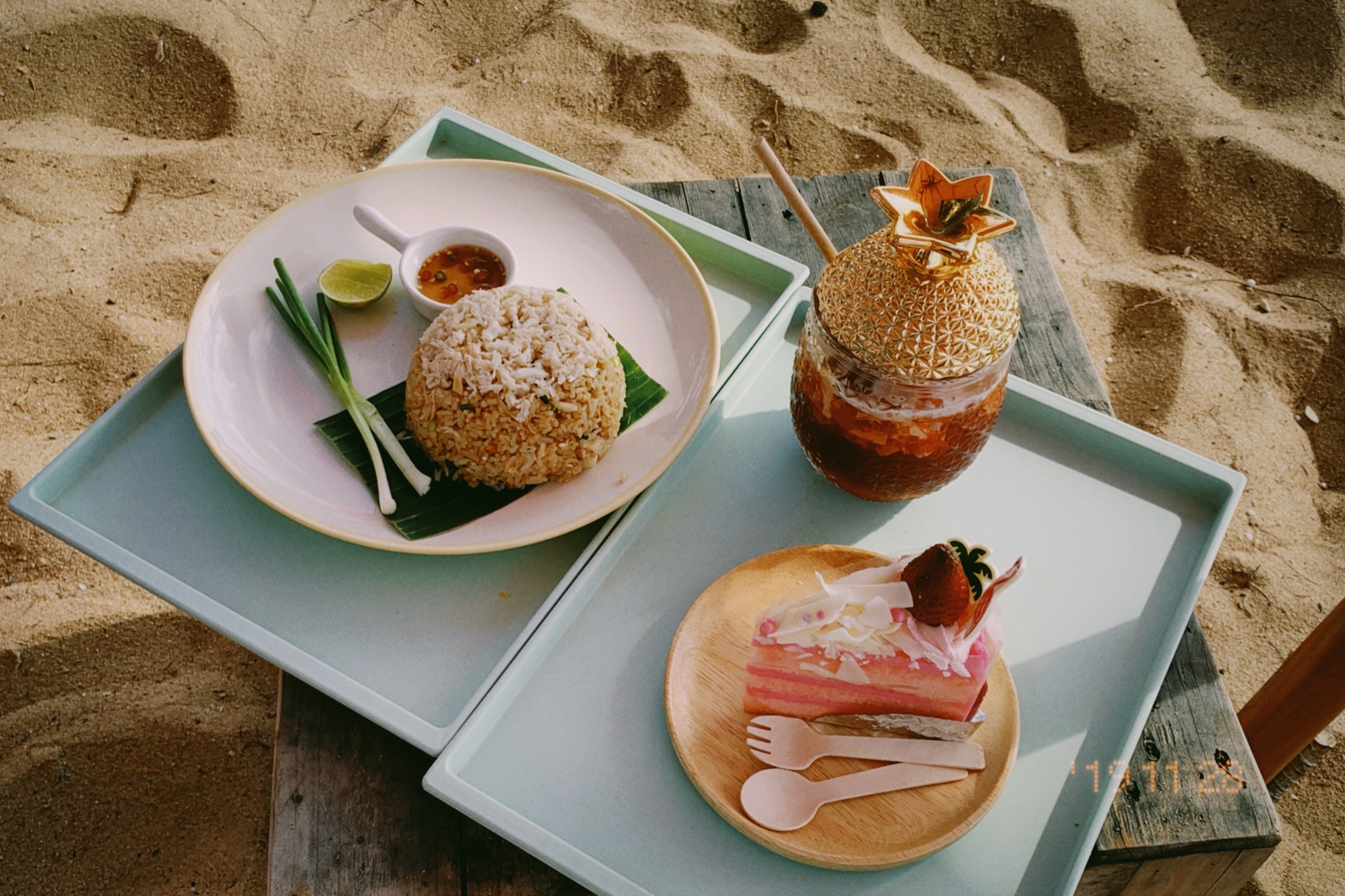 一早都没吃,徐老师饿得不行...故优秀的他竟然在甜品店点炒饭...(味道可想而知,但重点是容易吃进沙子🤣)优秀的他还知道我要拍照📷,押了500🐷换了这个精美的菠萝杯给我装饮料给我拍照😉