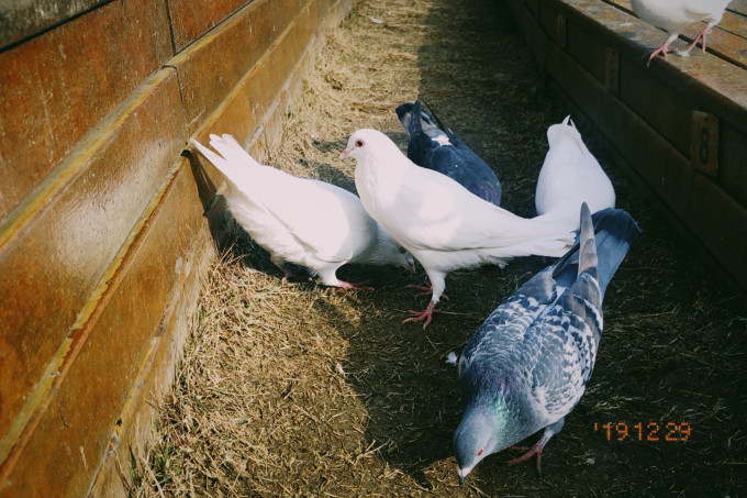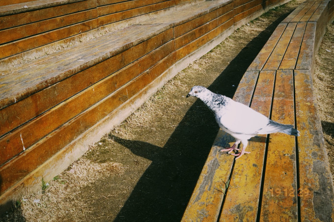 就是鸽子有一个很神奇的地方在于,就是突然一下,所有鸽子会在你毫无准备的情况下同时起飞,然后在上空盘旋,结果我手忙脚乱的拿起相机想抓拍几张大片,全是虚的……