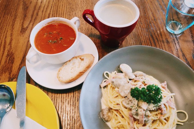 点了一份意面,一份番茄什么的汤吧,一杯美式,确实不错,里面的环境还不错,虽然从门面上完全看不出来。