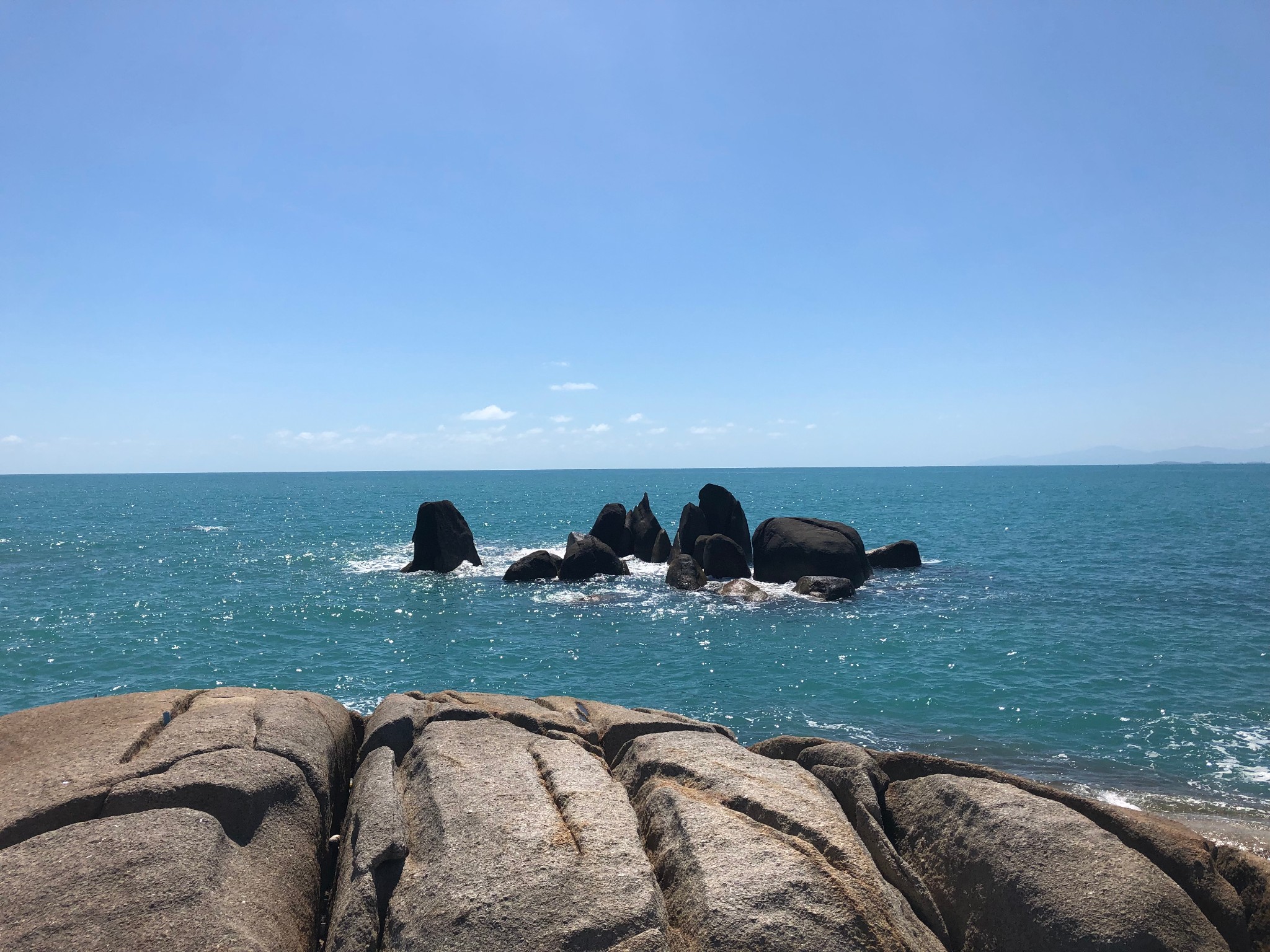 沿着石阶爬山大概30min左右就到了山顶观光点,脚力好的人估计20分钟就上去了。站在山顶的大石头上俯瞰全岛,视野开阔,美不胜收。随手一拍就可以做电脑桌面了。