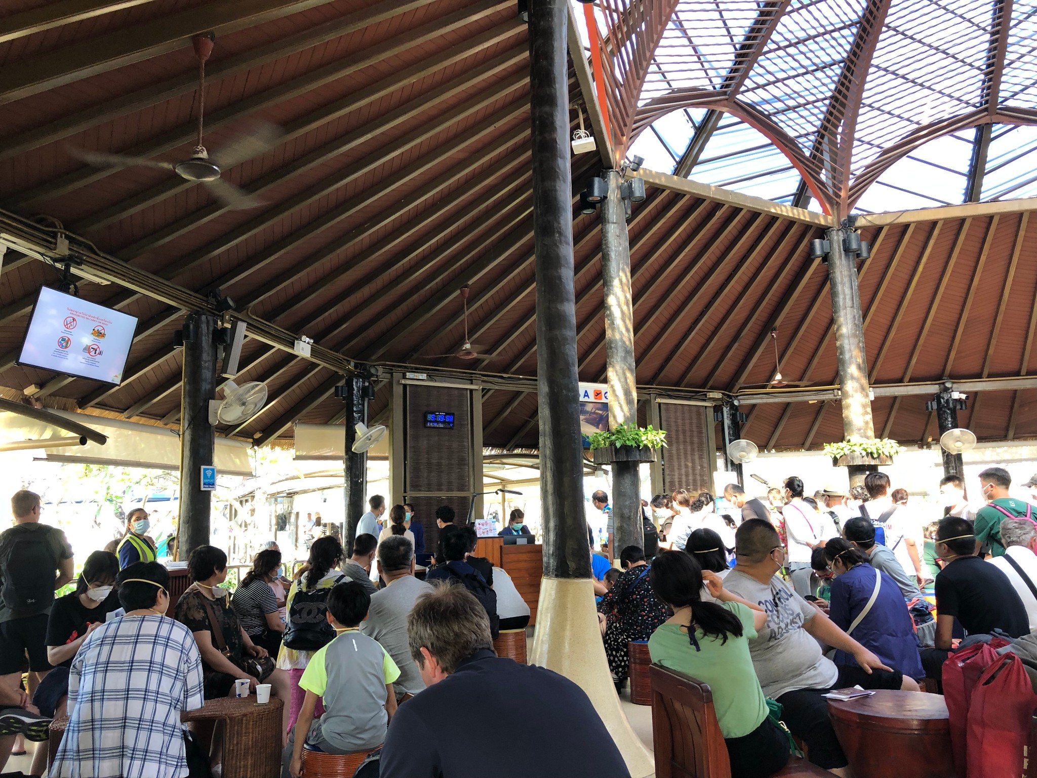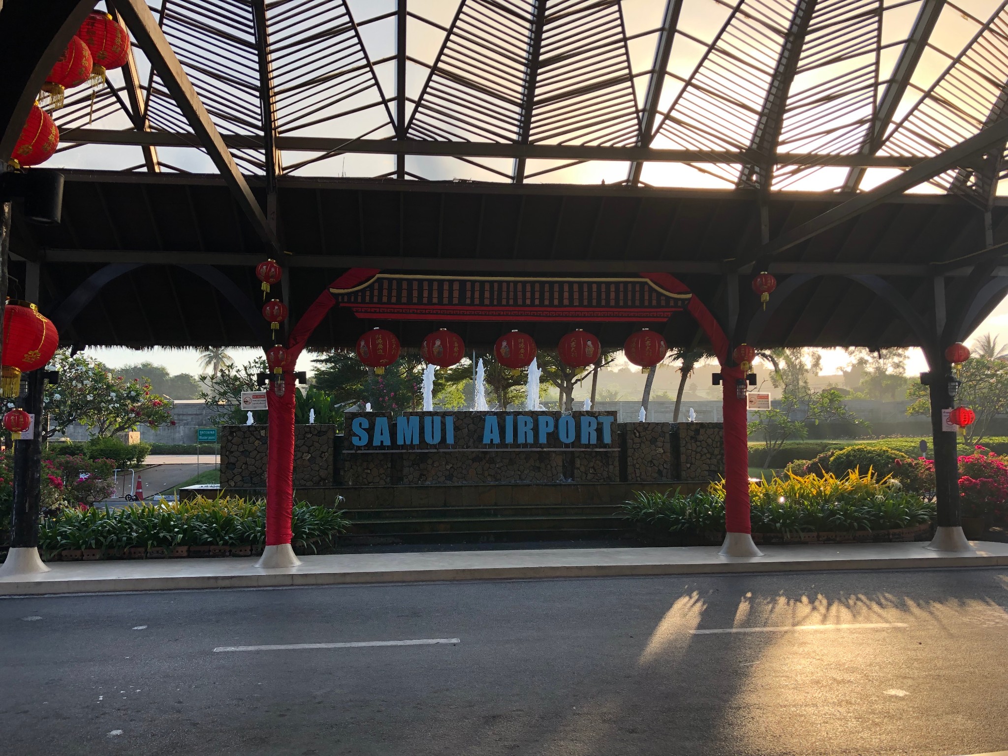 8:40飞机准时降落。 苏梅岛 机场真的很小,就只有地面一层。像众多网友说的,像是一个公园改建成的。办理落地签和过关的两个地方紧挨着,此时还有一架满载欧美人的航班落地,跟我们这一航班的人一起排队过关。两架航班的人顿时挤满了整个空间。