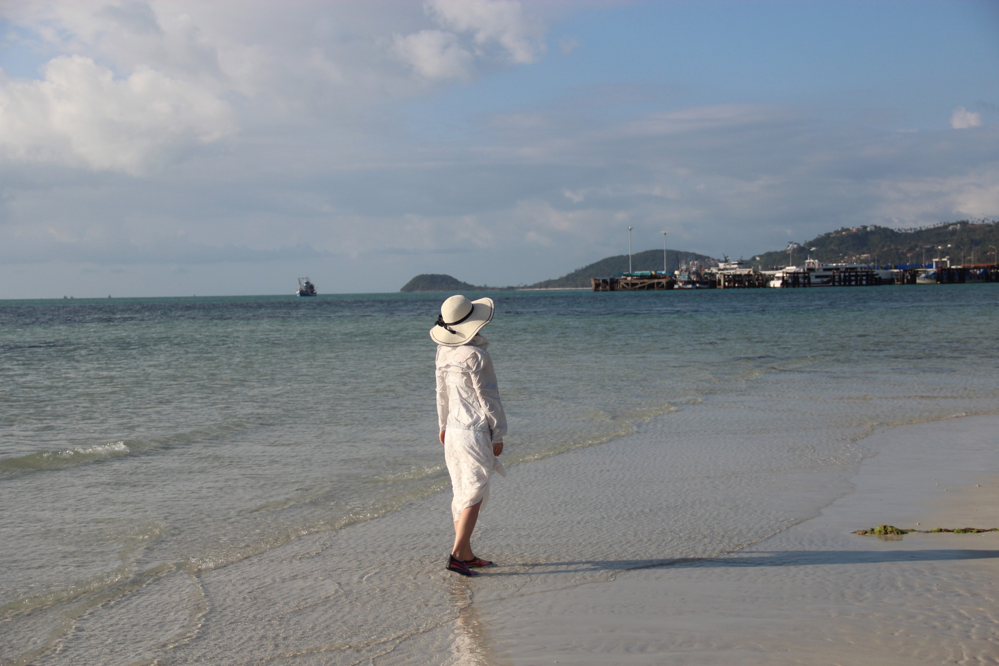 从酒店往查汶大街方向走。随意选了一条道下到海边沙滩上,然后沿着沙滩往查汶大街方向走。查汶沙滩的沙子是全岛上最细软的,一路走下去,到处都是 日光 浴的欧美人,戴着遮阳帽打着遮阳伞路过的我感觉自己格格不入……沙滩上还有很多做按摩的 泰国 大妈,到处招揽生意。也有很多卖小商品的小摊贩。
