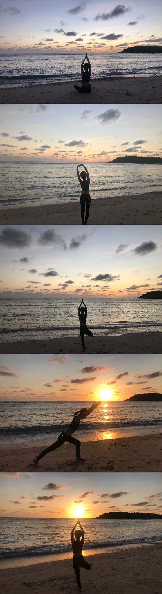 在日出过程中顺便摆拍了一组瑜伽照(没有瑜伽垫的沙滩上真的很难保持平衡……)