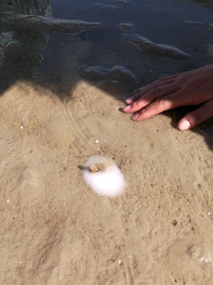 饱餐过后一定要跟朋友去散散步消消食,漫步在沙滩上的我们,一边感受着海风拂面,一边享受着海水的冲浪。海水没有太过冰凉,在 日照 的情况下,反而还有些许温暖。沙滩上的小贝壳,小海螺和小海蟹。有时候猝不及防可能会踩到他们,当然这是近视人士的悲哀。