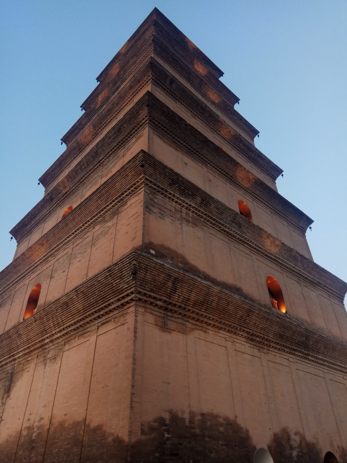 大雁塔又名“慈恩寺塔”。唐 永徽三年(652年), 玄奘为保存由天竺经 丝绸之路 带回 长安的经卷佛像主持修建了大雁塔,最初五层,后加盖至九层,再后层数和高度又有数次变更,最终固定为今天所看到的七层塔身,通高64.517米,底层边长25.5米。大雁塔作为现存最早、规模最大的唐代四方楼阁式砖塔,是佛塔这种古 印度 佛寺的建筑形式随佛教传入中原地区,并融入华夏文化的典型物证,是凝聚了 中国 古代劳动人民智慧结晶的标志性建筑。