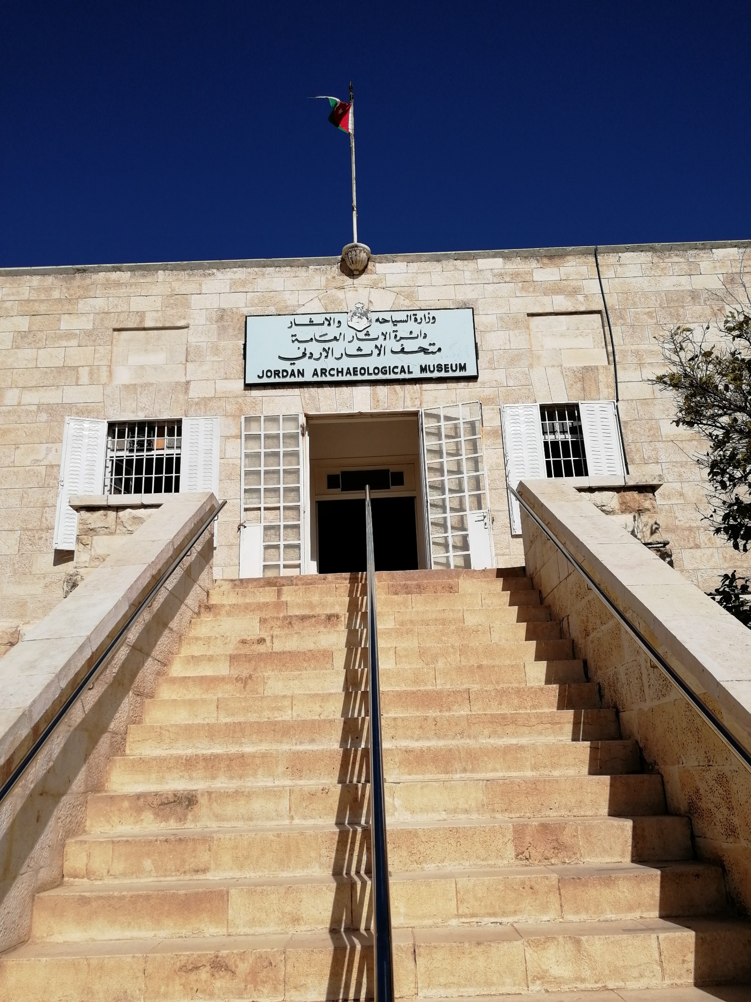 远处宏大的旗杆上飘着一面宏大的 约旦 国旗。