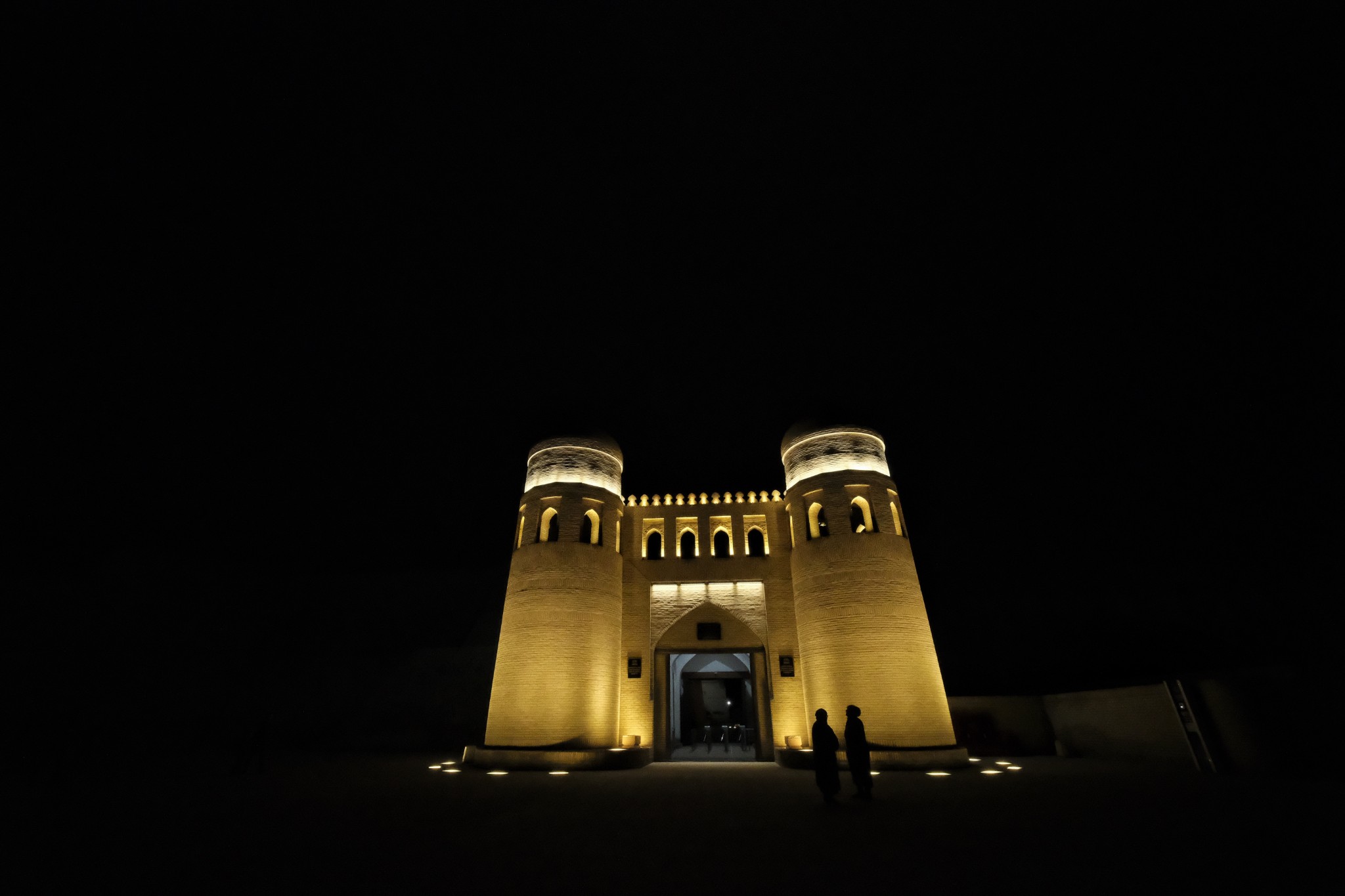 3.Dom Forum。是接待外宾会场,平常都是关闭状态,顶上有意味 战争 的白鹭,檐两侧绘制有自 撒马尔罕 谢尔 ·多经学院上的人脸太阳图案。
