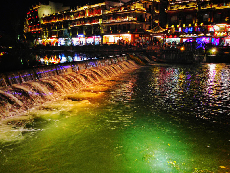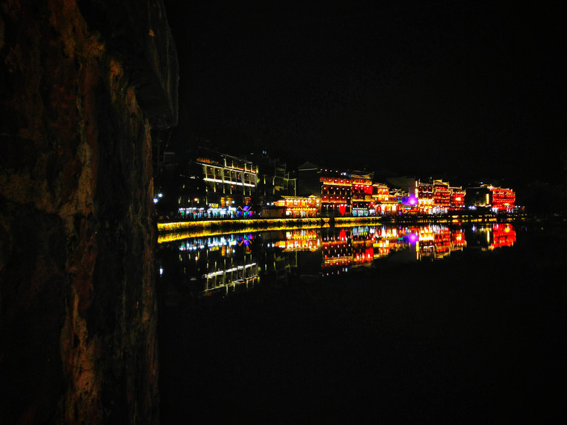 夜晚的凤凰古城别有一番神韵,夜晚才是沱江两岸最繁华最繁华的时辰。白昼古色古香的大街,有咖啡也有名茶,晚上纸醉金迷,自然也少不了音乐与酒。一到夜晚,凤凰古城就像羞怯的少女摘下面纱,化身一名热情豪放的女子,好像涅槃重生的凤凰冲上云霄,点亮整片星空。我被这般风光惹的如痴如醉,品着灯火摇曳下的音乐与酒,如梦境般将我带去远方……此时脑海里不只又浮想起一句话:“我明白你会来,所以我等。”