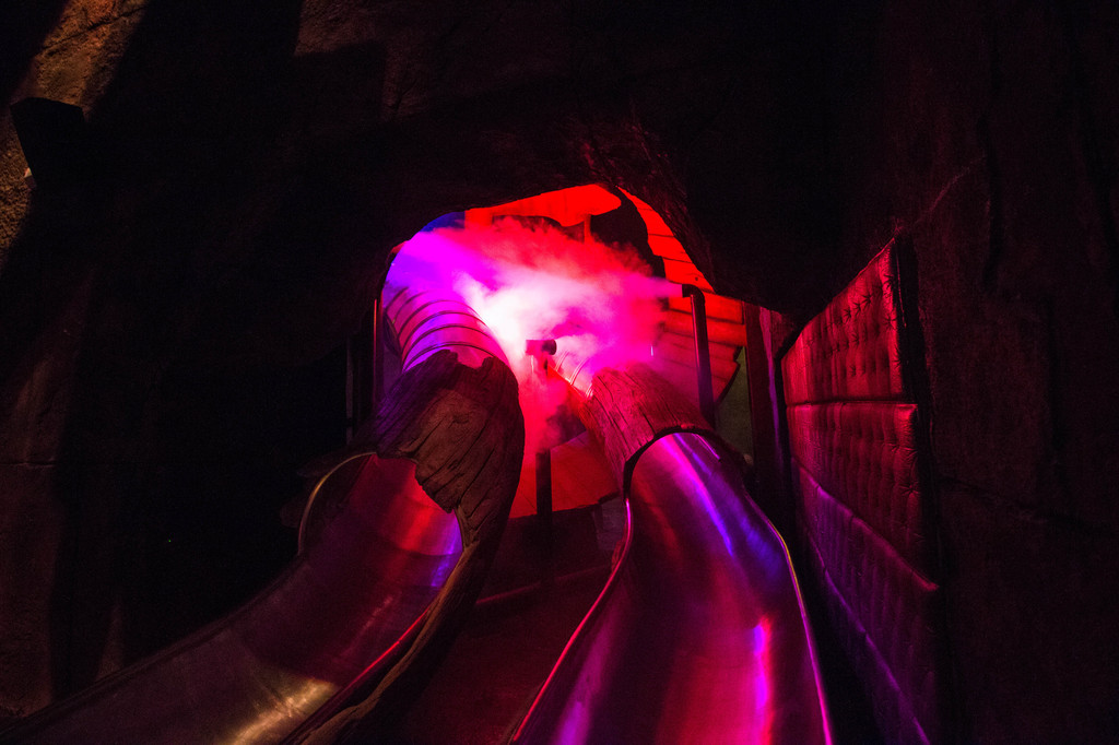 随处可见的阿兹猫,各种生活在城堡里的夜间生物影子,只有你们真实体验了,才能真切感受到这个设备的奇妙之处。最后通过一条长长见不到头的滑梯结束了城堡探秘。