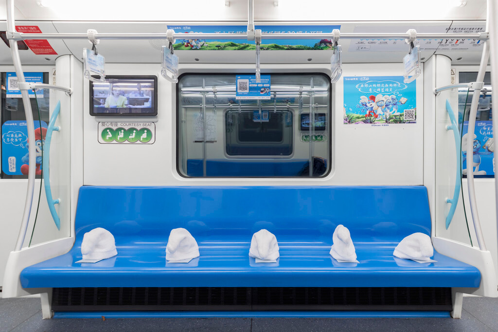这次童年之旅的开端便让我惊喜到不行,计划坐9号线再打车的我,竟然偶遇了9号线蓝精灵专列。一上车就看到车门、车窗上贴满了可爱的蓝精灵,搭配9号线原有的蓝色,就好像真的穿越到了蓝精灵的童梦世界。