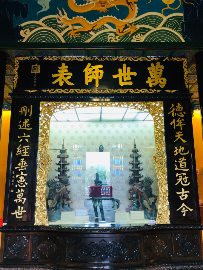 正门的白石仿古牌坊,雄伟巍峨,巧夺天工。园中的陶塑、瓷塑、砖雕、灰塑、石刻、木雕等艺术精品琳琅满目。惊世之作,当数已列入大世界吉 尼斯 之最的瓷塑浮雕《清明上河图》和巨幅砖雕《吐艳和鸣壁》。荔岛中的聚家阁金碧辉煌,雍容华丽,阁内供奉着万世师表孔子铜像,供游人瞻仰。