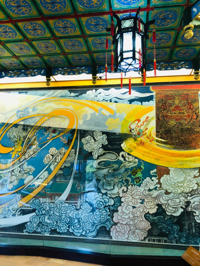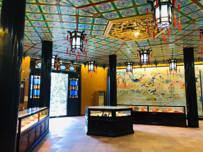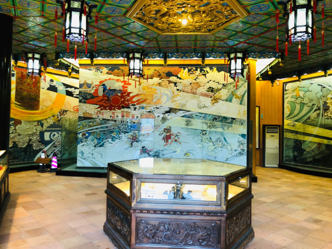 艺术画廊从紫洞舫后面的石拱桥一直联通到八面来风亭(八角亭),仿照皇家园林的特色建造,长400多米,长廊的梁枋、外檐、梁架等部位,绘画了800多幅彩画,仿似 北京 颐和园的画廊。