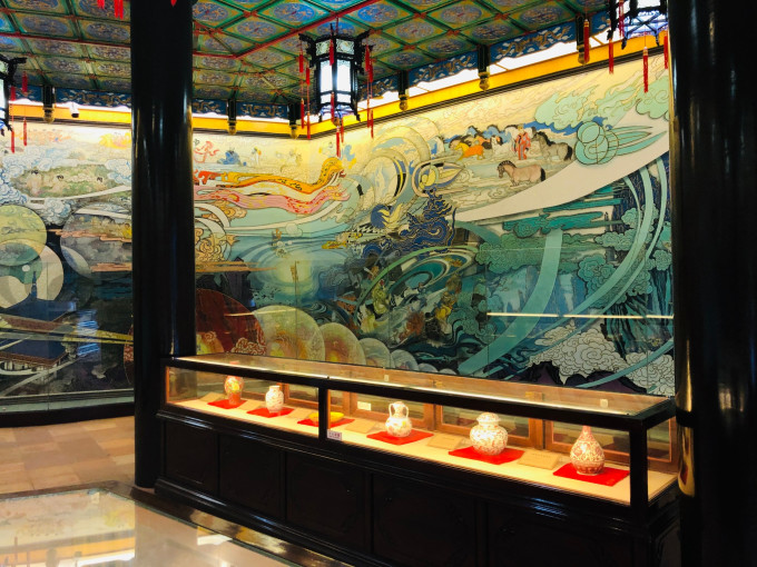 宝墨园的大型彩绘浮雕瓷壁画《清明上河图》按原作扩大百倍,另加序和跋及饰边,全长62.8米,高7.3米,由1352块浮雕瓷板拼砌而成,将陶瓷雕塑和陶瓷彩绘相结合,整幅浮雕瓷画气势磅礴,栩栩如生,雕艺精湛,被列入“吉 尼斯 大世界之最”,可以说是宝墨园的镇园之宝。